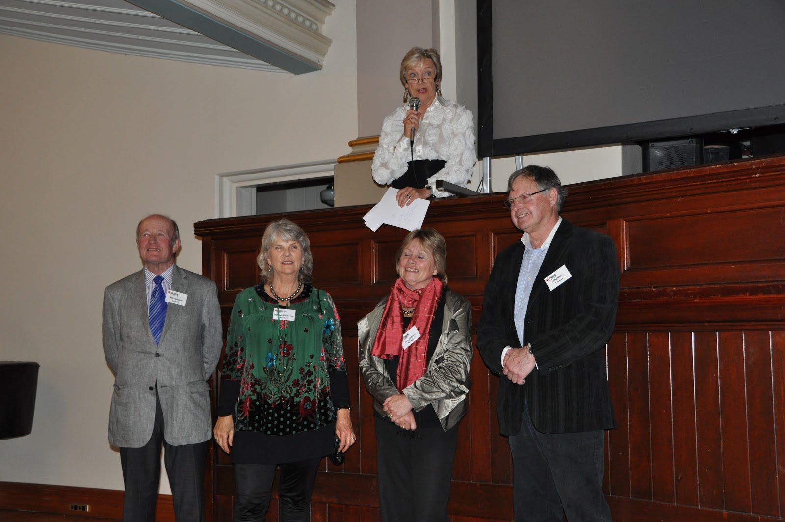 Chairperson Trish Gribben (Auckland) introduces Rose Charities NZ Trustees (left to right) Mike Webber (Whanganui) , Pip Neville-Barton (Waiheke Island) , Jane Midgley and John Veale (both Christchurch)